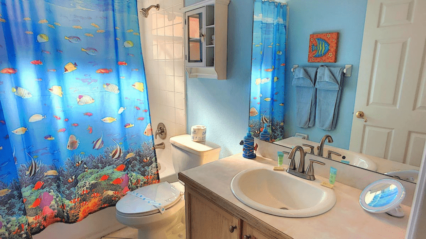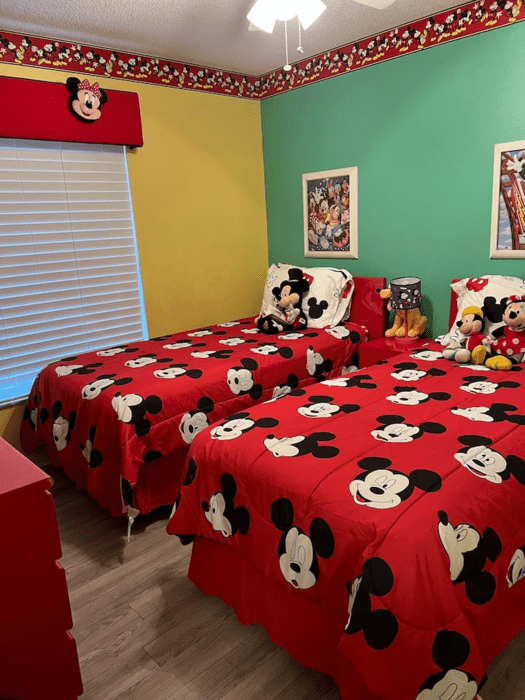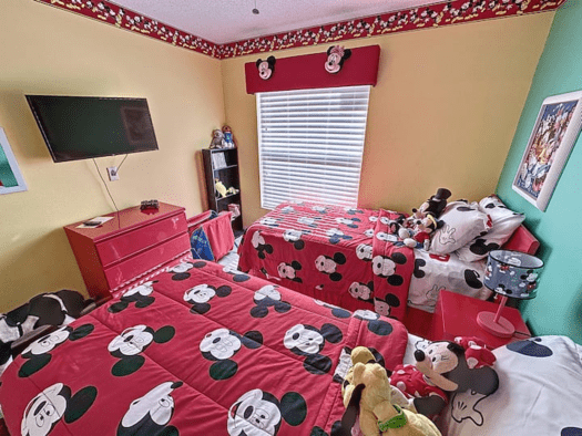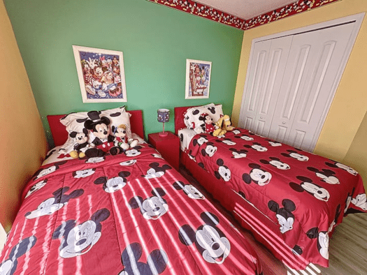 TWIN ROOM. The Third bedroom features 2 twin beds and is Disney themed for the kids to enjoy! The family bathroom is next to this bedroom