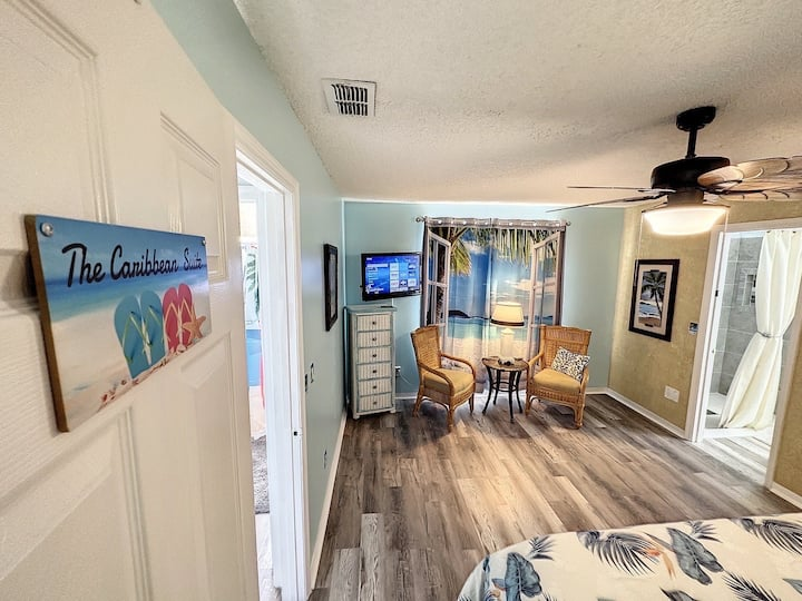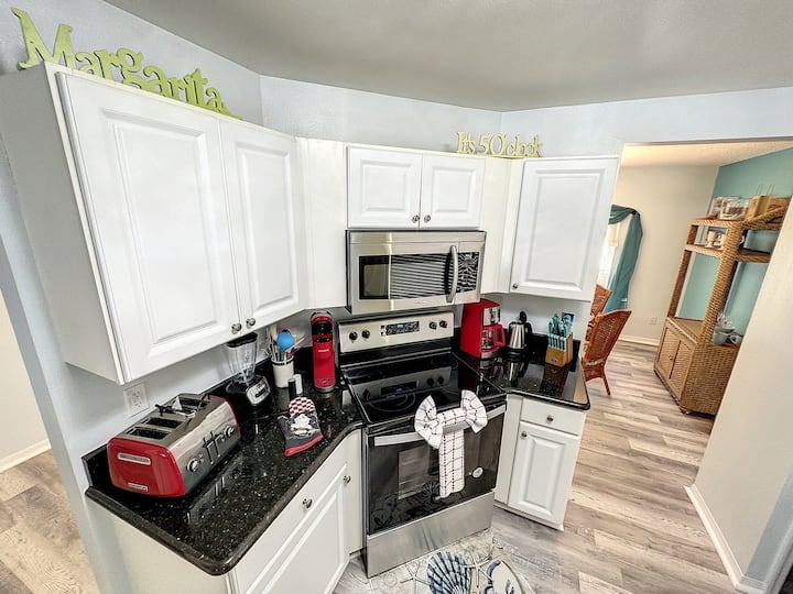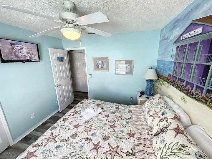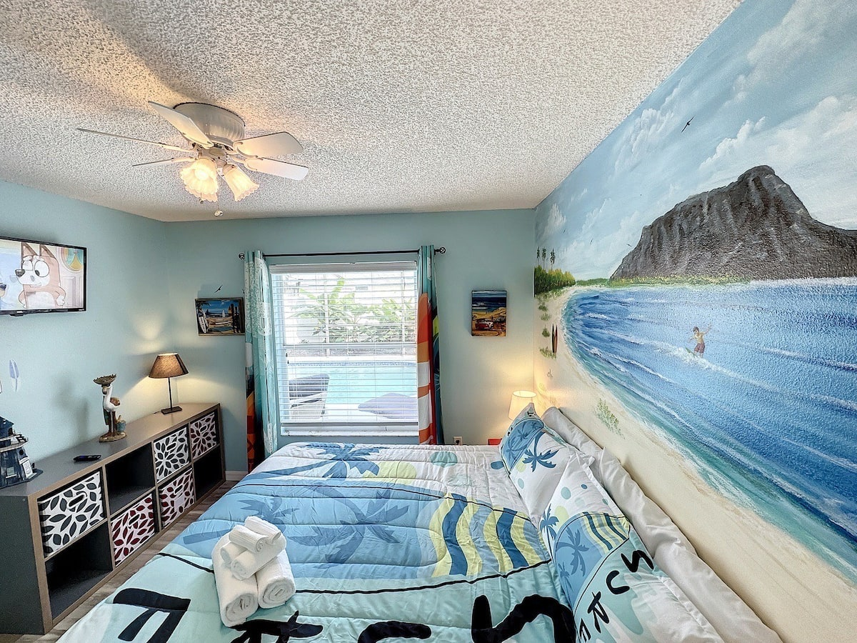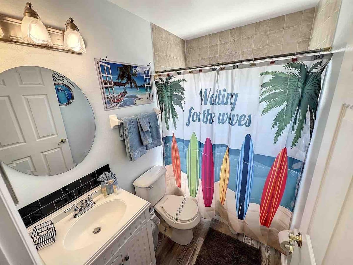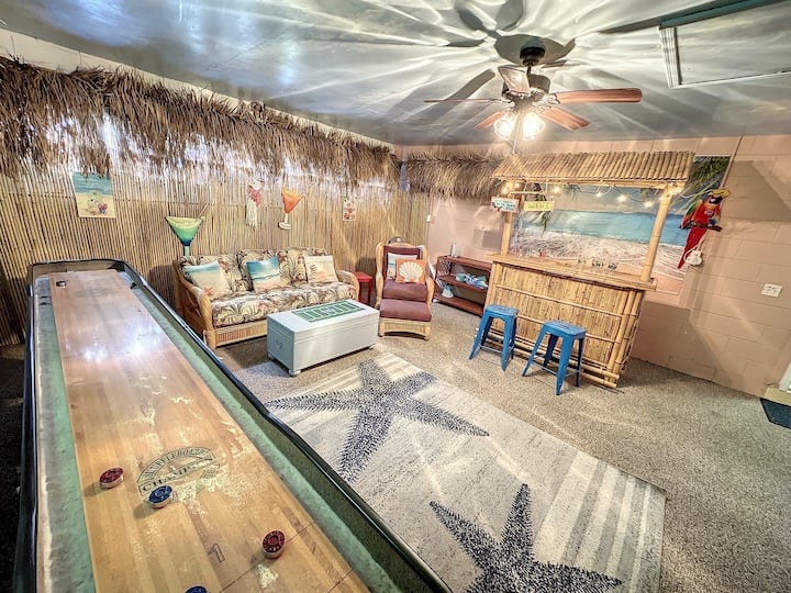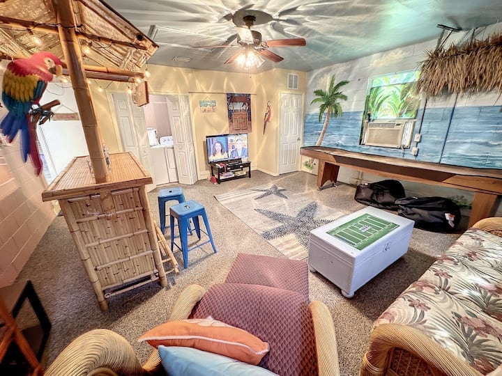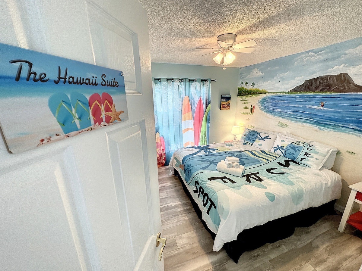When it’s finally time for bed, you can either Hula into the Hawaii room, cruise into the Caribbean master suite or find peace in the Florida Keys bedroom. All of the bedrooms have King size beds, and the custom murals will make you feel like you’ve slipped into a tropical paradise. All of the bedrooms have flat screen Roku TVs!