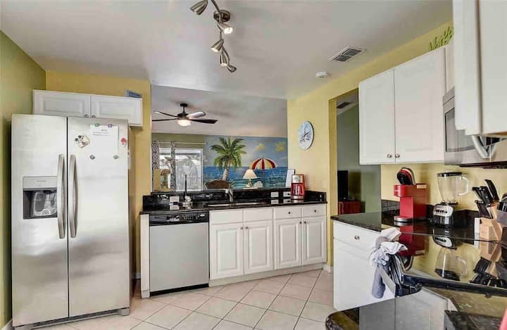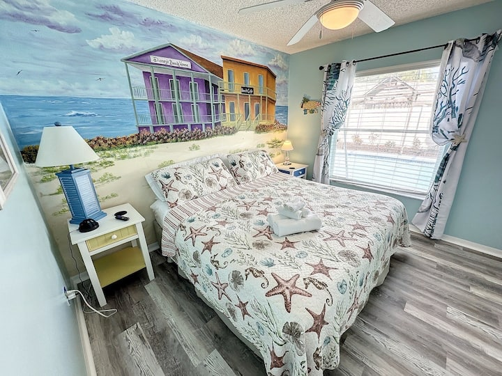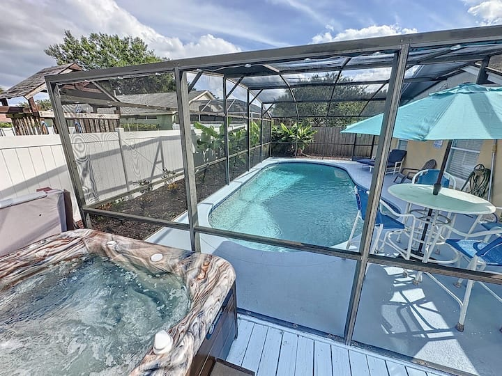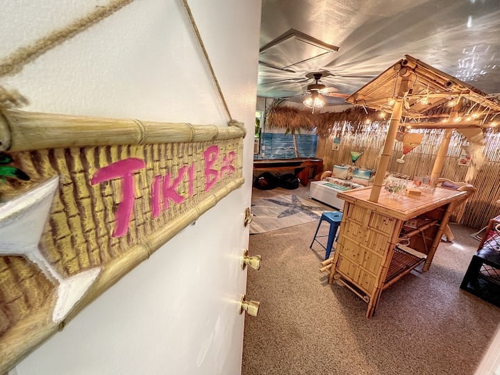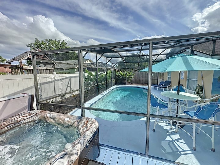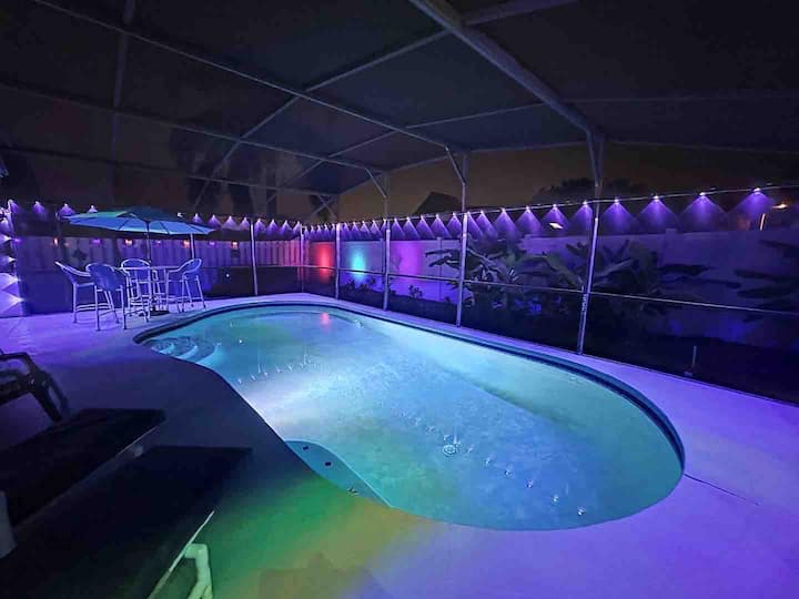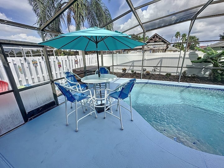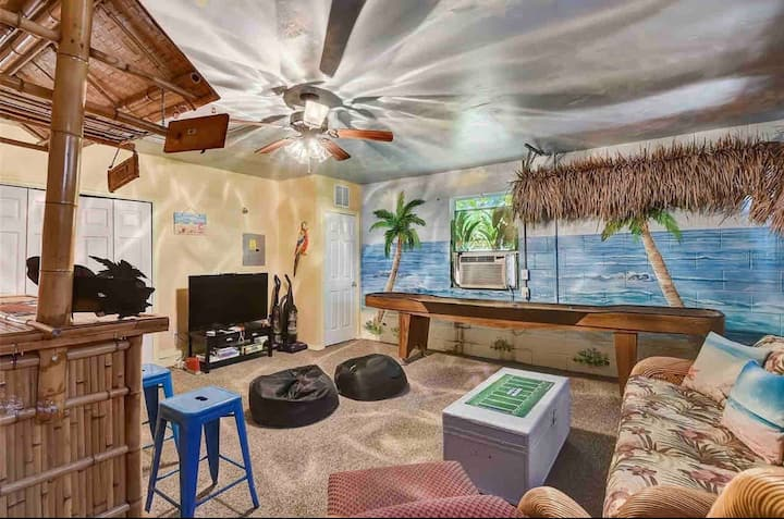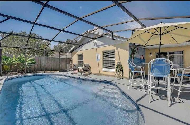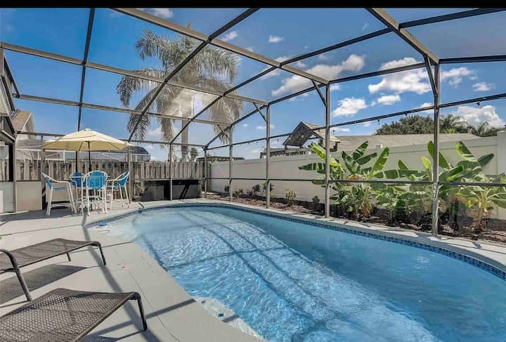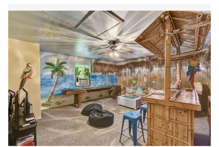 So Relaxing, you’ll feel you are at the beach. Make some memories at this unique and family-friendly place. 3 King Sized Beds, Private Pool, New Hot Tub, Sun Deck , Beach Themed, Tiki Style Game room with a Shuffle Board , and only 4 miles to Disney. What more do you need?