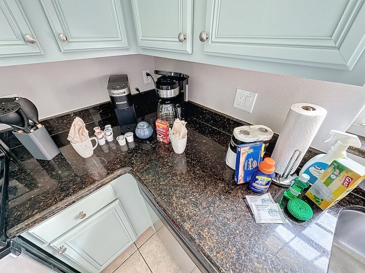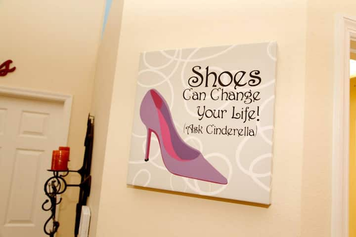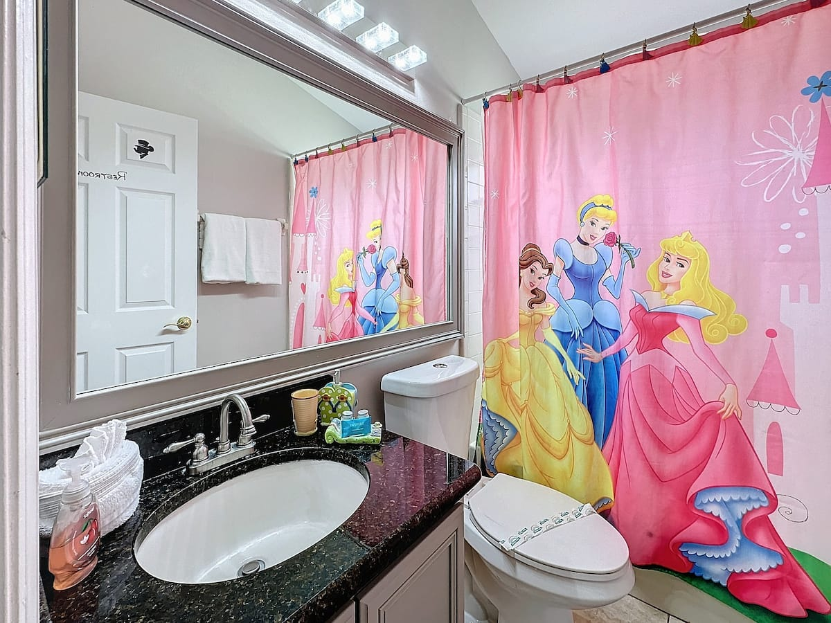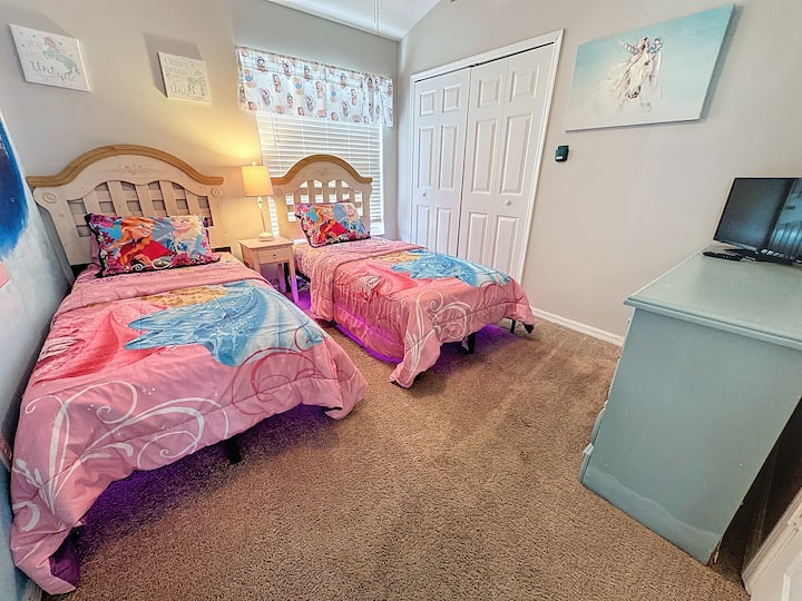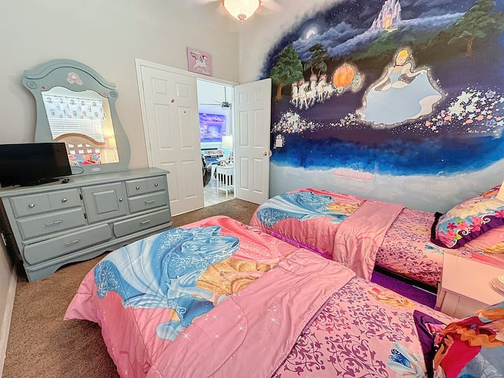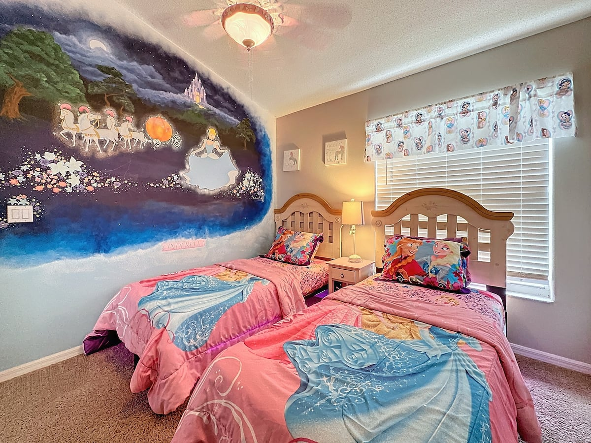 The third bedroom has two twin beds and is fit for a princess! Tastefully decorated with a Cinderella theme, your princess will be excited about bedtime.